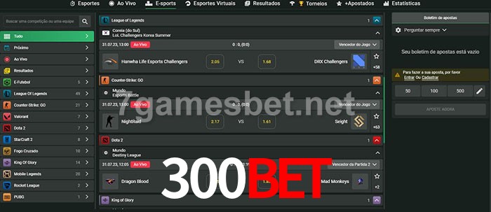O 300Bet oferece uma grande seleção de opções de apostas em e-sports com probabilidades competitivas